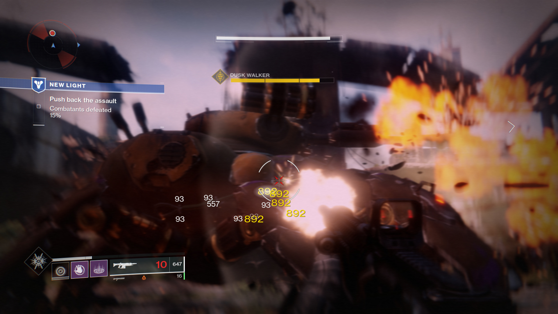 Destiny 2 also opts for a flat UI design, comprised mostly of both opaque and transparent boxes with some icons to show what the user has equipped. It uses colour to display elements and types rather than the ability status itself. A potential issue is that abilities on cooldown could blend in with the rest of the game world, especially when looking at bright white areas, as they are essentially only a small transparent box with very thin white borders and equally transparent iconography.