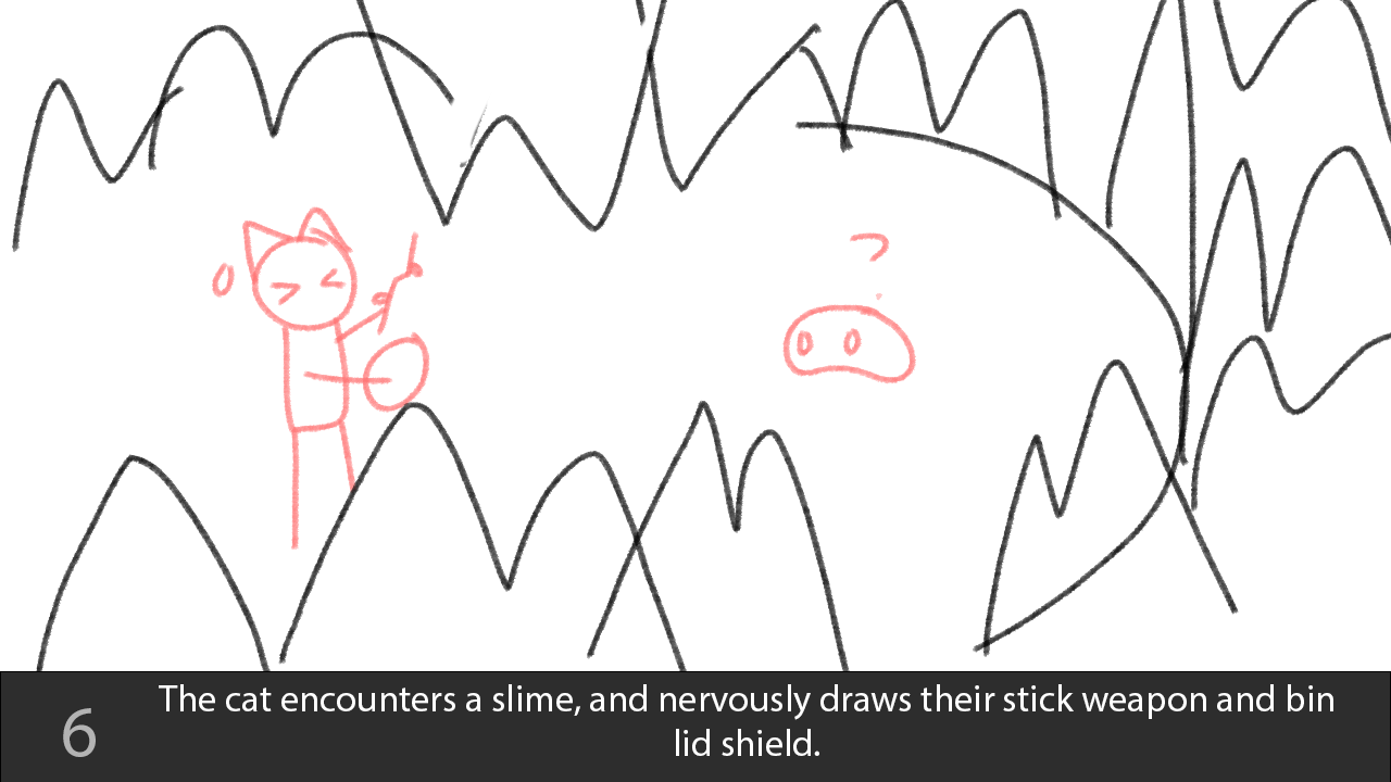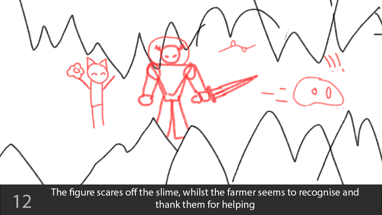 - Photoshop (Storyboarding, character sprites + backgrounds)