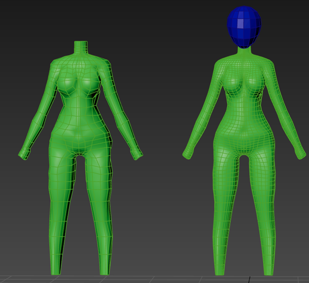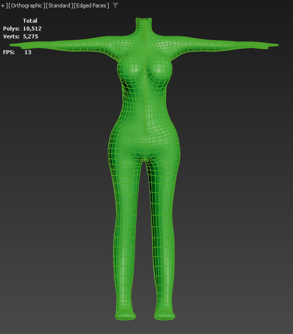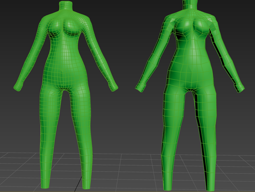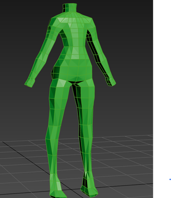 This stage was about finishing the base body mesh so I was ready to model clothing on top. It involved a mix of using soft selection to gently scuplt areas into more natural curves and retopologising. Many edge loops were removed which significantly reduced the models poly count. This let me add some back to the body where it was more needed for a even density across the model.