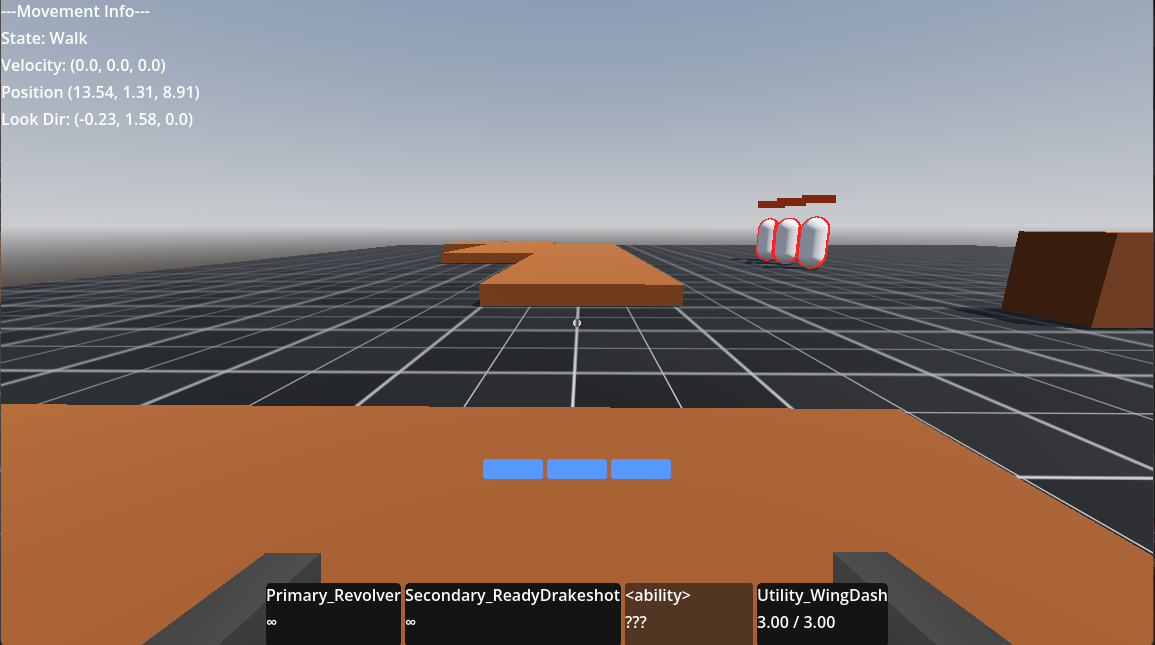 One of the inspirations for working with the friction was that I had already planned to slightly alter Mesaryth's kit for the game. Shes a character that is intended to fly alot, yet her primary fire is a slow projectile. Her secondary fire is the worst offender since it uses a piercing shot that would be really hard to get value out of in mid-air!